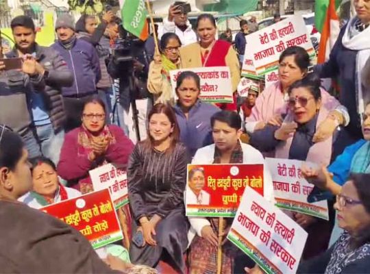 ऋषिकेश: अंकिता भंडारी हत्याकांड में कांग्रेस कार्यकर्ताओं ने यमकेश्वर विधायक रेणु बिष्ट के ऋषिकेश स्थित निजी आवास का घेराव के लिए कूच गिया। पुलिस ने बैरिकेडिंग लगाकर रास्ते में कार्यकर्ताओं को रोक दिया।महिला कांग्रेस की प्रदेश अध्यक्ष ज्योति रौतेला, जिलाध्यक्ष अंशुल त्यागी के नेतृत्व में गौरा देवी चौक से कार्यकर्ता नारेबाजी कर विधायक के प्रगति विहार स्थित आवास के लिए निकले।आवास जाने वाले दोनों मार्गों को पुलिस ने बैरिकेडिंग लगाकर रोक दिया। उसके बाद कार्यकर्ता बैरिकेडिंग के ऊपर चढ़ गए। पुलिस ने उन्हें वहां से हटा दिया। प्रदेश अध्यक्ष ज्योति रौतेला ने आरोप लगाया कि सरकार वीआइपी को बचाने में लगी है। मामले की निष्पक्ष जांच होनी चाहिए। इस दौरान पार्षद सरोजनी थपलियाल, पूर्व पार्षद पुष्पा मिश्रा, मधु जोशी, सुनीता बंसल, सुमन पंचभाइया, सरस्वती, सावित्री, पार्वती, उमा, शांता, कमला, शारदा, गायत्री, मंगला, रुक्मिणी, सुमित्रा, उर्मिला, कौशल्या आदि मौजूद रहे।
