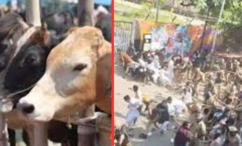 उजाला नगर में मंदिर के समीप गोवंश का कटा सिर मिलने की सूचना इंटरनेट मीडिया में फैलते ही शहर एक बार फिर सांप्रदायिक तनाव की जद में आ गया। हिंदूवादी संगठन सड़कों पर उतर आए। पीलीकोठी से लेकर उजाला नगर तक कई दुकानों में तोड़फोड़ कर उन्हें बंद करा दिया। नारेबाजी व पथराव के बीच पुलिस को स्थिति नियंत्रित करने के लिए लाठीचार्ज करना पड़ा। बरेली रोड से ट्रैफिक डायवर्ट कराने के साथ ही मौके पर और शहर के संवेदनशील स्थानों पर पुलिस बल तैनात कर दिया गया है। बरेली रोड में उजाला नगर के उजालेश्वर मंदिर के पास रविवार रात करीब आठ बजे गाय के बछड़े का सिर मिलने की सूचना फैलते ही हिंदूवादी संगठन आक्रोशित हो गए। इंटरनेट मीडिया के जरिये मौके पर पहुंचने की अपील की गई। लोग उजाला नगर में एकत्रित होने लगे। इससे पहले पीलीकोठी में भी मुस्लिमों के रेस्तरां, बारबार शाप, टेलर, कारपेंटर आदि दुकानों में तोड़फोड़ की गई। इधर उजाला नगर में जय श्री राम के नारे लगाते हुए लोगों ने हंगामा शुरू कर दिया। धीरे-धीरे भीड़ बढ़ती चली गई। आसपास की दुकानों में पत्थर फेंके जाने लगे। पुलिस-प्रशासन के विरुद्ध नारेबाजी के साथ ही मौके पर पुलिसकर्मियों से भी धक्कामुक्की होने लगी। हंगामा बढ़ता देख पुलिस ने लाठी चार्ज किया। दूसरी ओर से मुस्लिम पक्ष के लोग भी एकत्र होने लगे। माहौल बिगड़ता देख पुलिस ने बरेली रोड से ट्रैफिक डायवर्ट कर दिया।