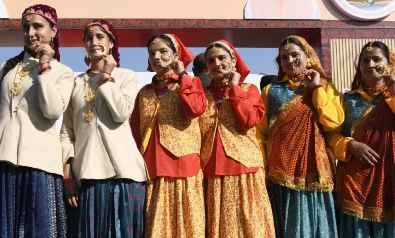 प्रदेश के 25वें स्थापना दिवस पर दून में विभिन्न जिलों से पहुंचे लोग, विशेषकर पर्वतीय क्षेत्रों की महिलाएं, पारंपरिक परिधानों में सजधज कर कार्यक्रम की शोभा बढ़ा रही थीं।जौनपुर, जौनसार, टिहरी, पिथौरागढ़, चमोली, उत्तरकाशी से लेकर नीती-माणा घाटी तक की महिलाओं ने अपने क्षेत्रीय परिधानों और आभूषणों से उत्तराखंड की समृद्ध सांस्कृतिक विरासत को जीवंत कर दिया। पिछौड़ा, लाल या पीले रंग का शुभ दुपट्टा, जिस पर स्वास्तिक और सूर्य जैसे मंगल प्रतीक बने होते हैं, कुमाऊंनी संस्कृति का अहम प्रतीक रहा। वहीं अंगरा और सारोंग ने ठंडे पहाड़ी मौसम में परंपरा और सौंदर्य का संगम दिखाया
